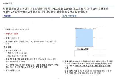 [10338] 부천 인천 공장 매매 소개 물건은 인천 공장 매매 대지 약 1996평 연면적 약 2584평 소개 합니다